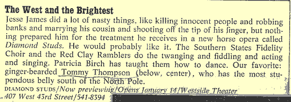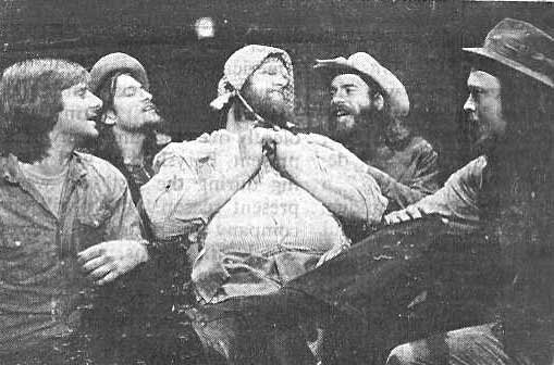 Tommy Thompson (center) as Zerelda Samuals with Jim Watson and Bill Hicks on the right |