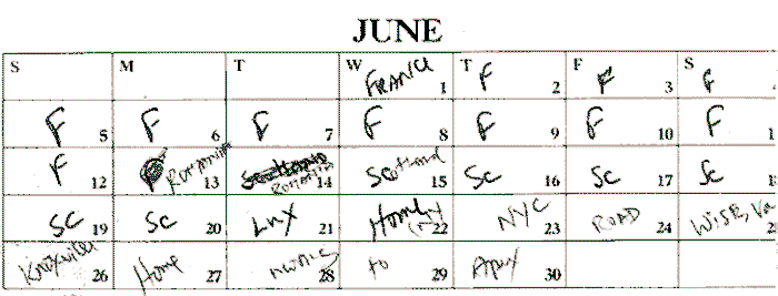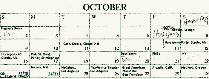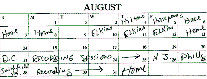 "DC recording sessions in August, that's for Merchant's Lunch. Philly is Philadelphia Folk Festival, and Smithfield, VA is a bluegrass fest with John Hartford and other b.g. luminaries."