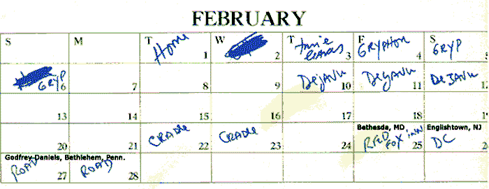 "The Deja Vu was a club in Raleigh where this guy sat down at a table right in front of us, poured a pint of Jack D in pitcher of beer, drank it all, and passed out.... all in about one set." (Cat's Cradle Calendars)