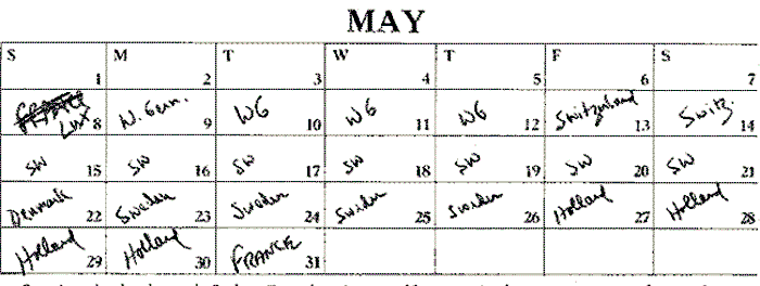 "Luxembourg is where we landed, and Jack offered to toss all our records into the Mosel River--rather than pay duty to the German customs agent for what were only 'demos to be given away at gigs.' Sweden was a hoot. I found in the bookshelf of our host in Stockholm--a Fuzzy Mountain LP! It got there before I did. Look how long that trip was.... nearly 7 weeks in Europe" [see Blurred Time]