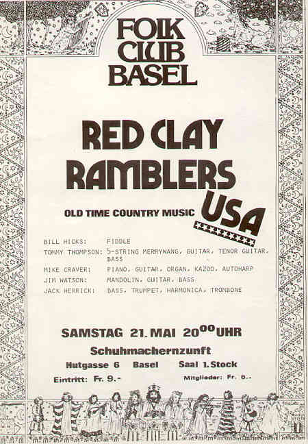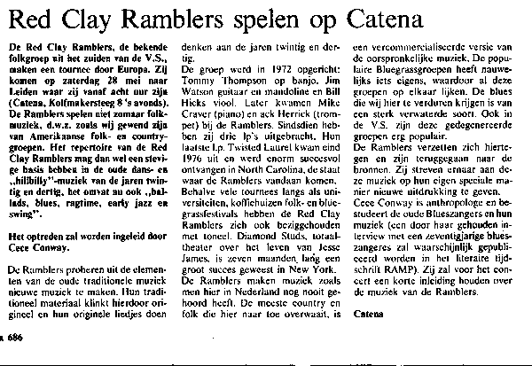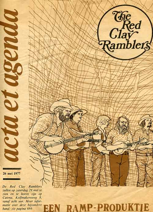 If you can read Dutch, here's an article about the Red Clay Ramblers from the newspaper at left. The drawing is from a picture taken by Cece Conway. | ||