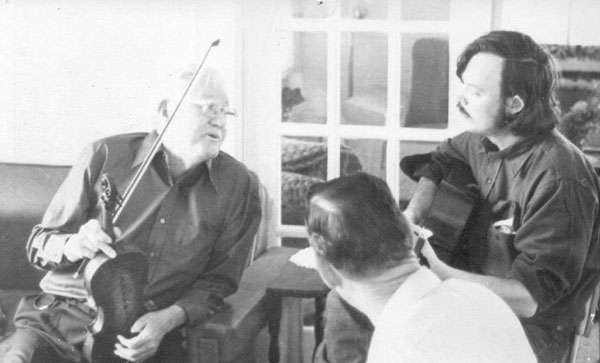 a jam including Glen Smith and John Morris on fiddles, Blanton Owen on