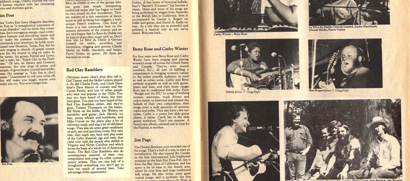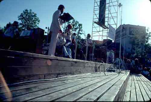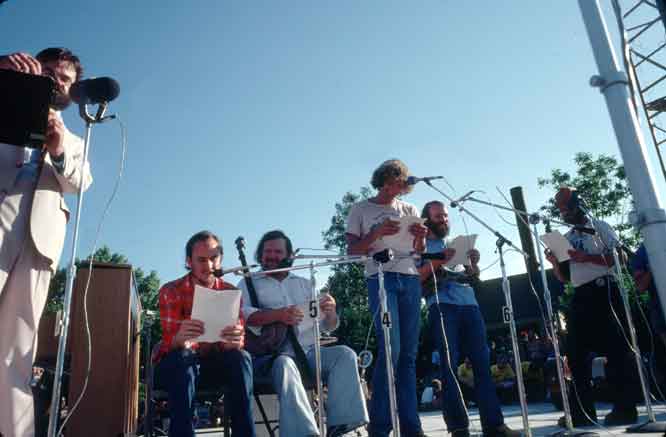 | The pics on this page came from Nic Siler. Nic lived in Chapel Hill in the seventies and traveled with a sound system--a great vantage point for pics. He also, by chance, was in Minnesota for the Red Clay Ramblers' appearance on the Prairie Home Companion show in 1979 and also caught RCR at the Vancouver Folk Festival in 1980. After a chance meeting with Jim Watson recently, Nic sent us his fine collection of Rambler pics. He's still looking for the Vancouver pics so join us in sending him thanks for these and cyber vibes to help him find the rest! | ||