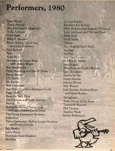 Program cover List of Performers Red Clay Ramblers bio/pic (use back to return from the images) |