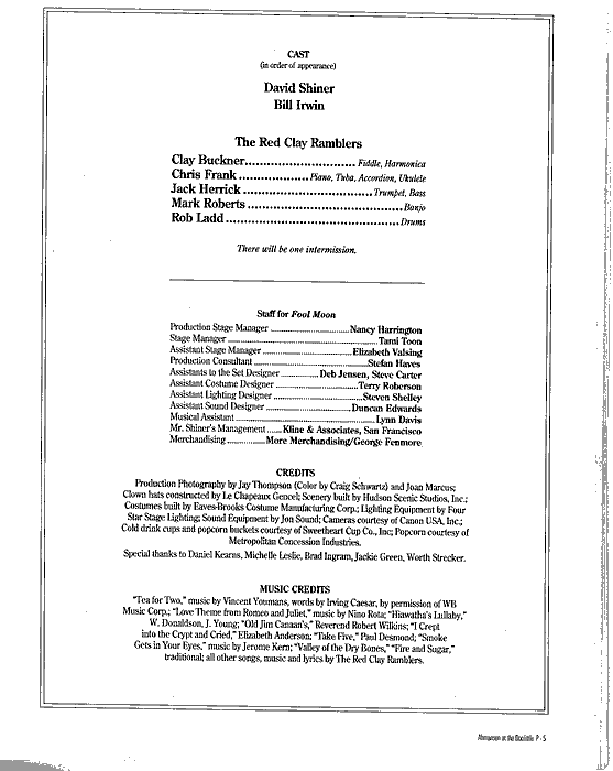 Fool Moon, Hollywood, 1994 (From the collection of Roy C. Dicks) The opening of this particular run of Fool Moon was held up by the massive Los Angeles earthquake! |