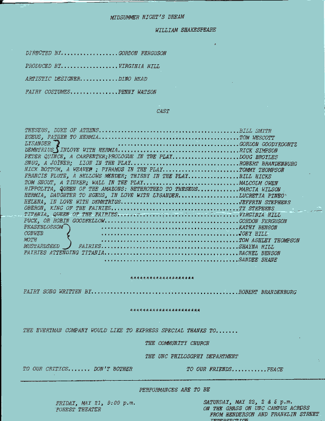 Midsummer Night's Dream, very early 70s, Everyman Company |