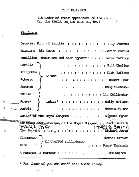 The Winter's Tale, 1976 or 1977 Program by Liz Cullington |