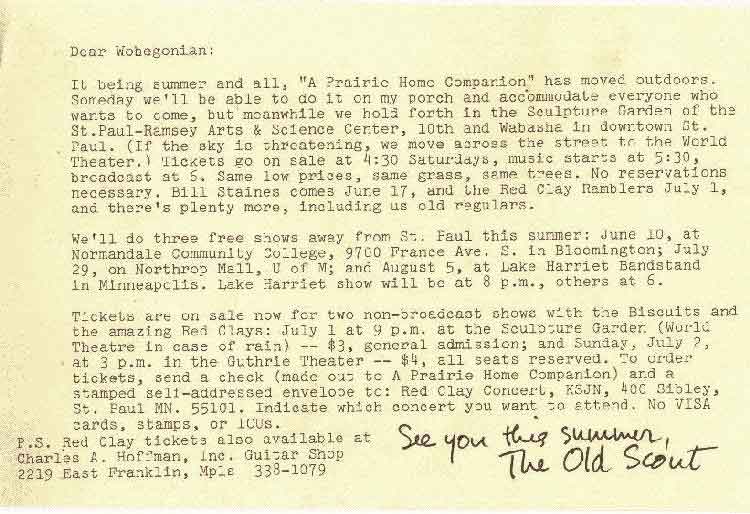 Garrison Keillor promotes the "amazing" Red Clay Ramblers' appearance on his show in 1978 in the Prairie Home Companion newsletter!